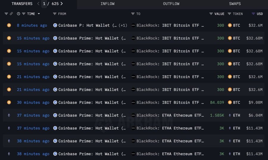 While BlackRock has not publicly confirmed these exact transactions, the on-chain transfers have been corroborated by multiple blockchain-analytics observers.